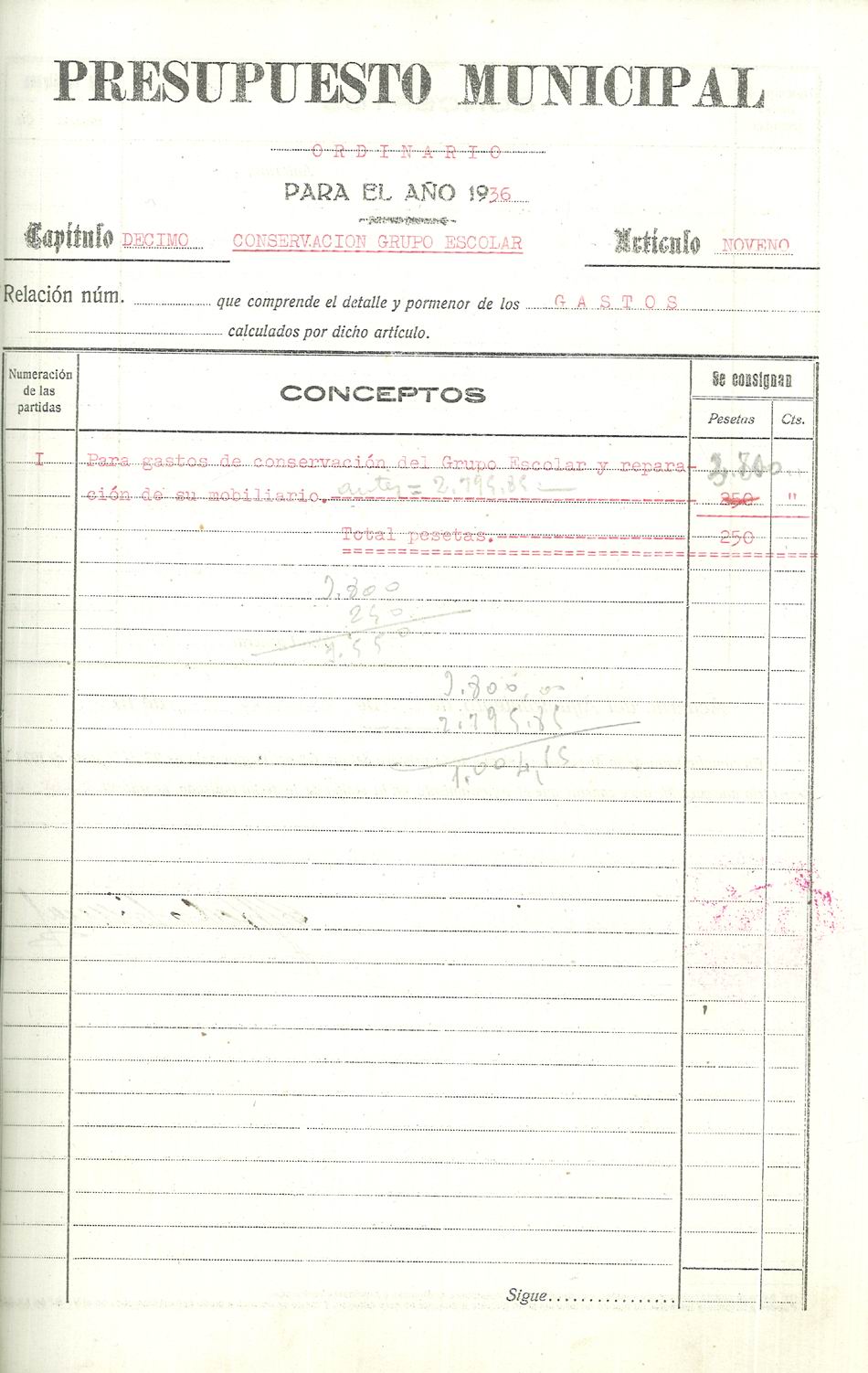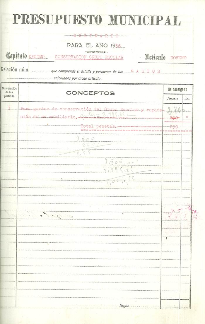 Presupuesto municipal ordinario del Ayuntamiento de Aspe para el año 1936