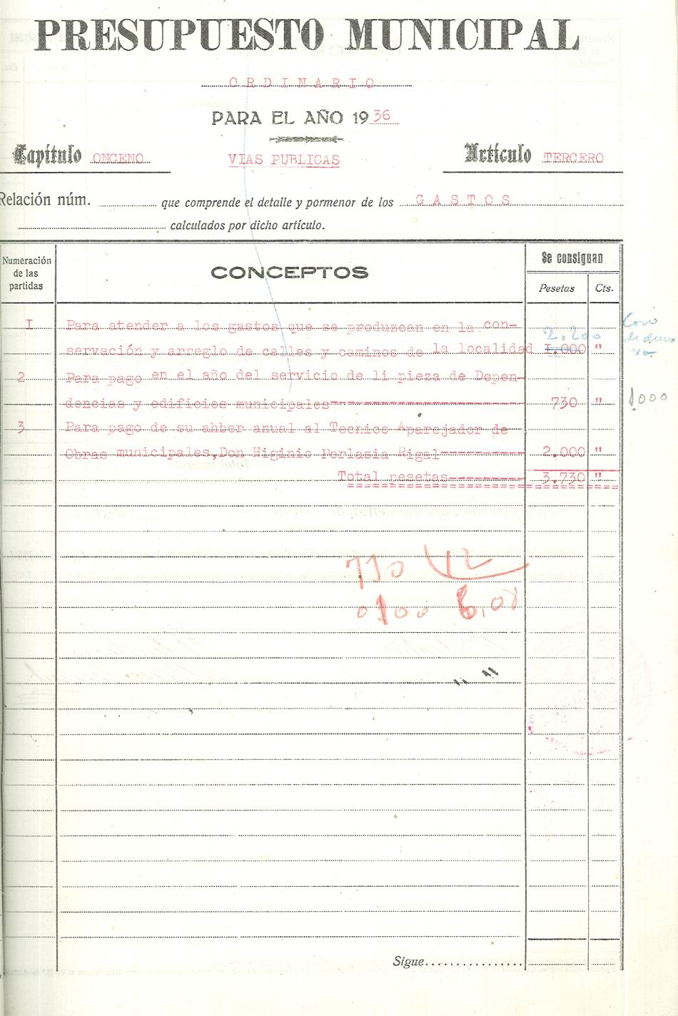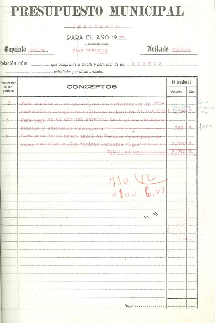 Presupuesto municipal ordinario del Ayuntamiento de Aspe para el año 1936