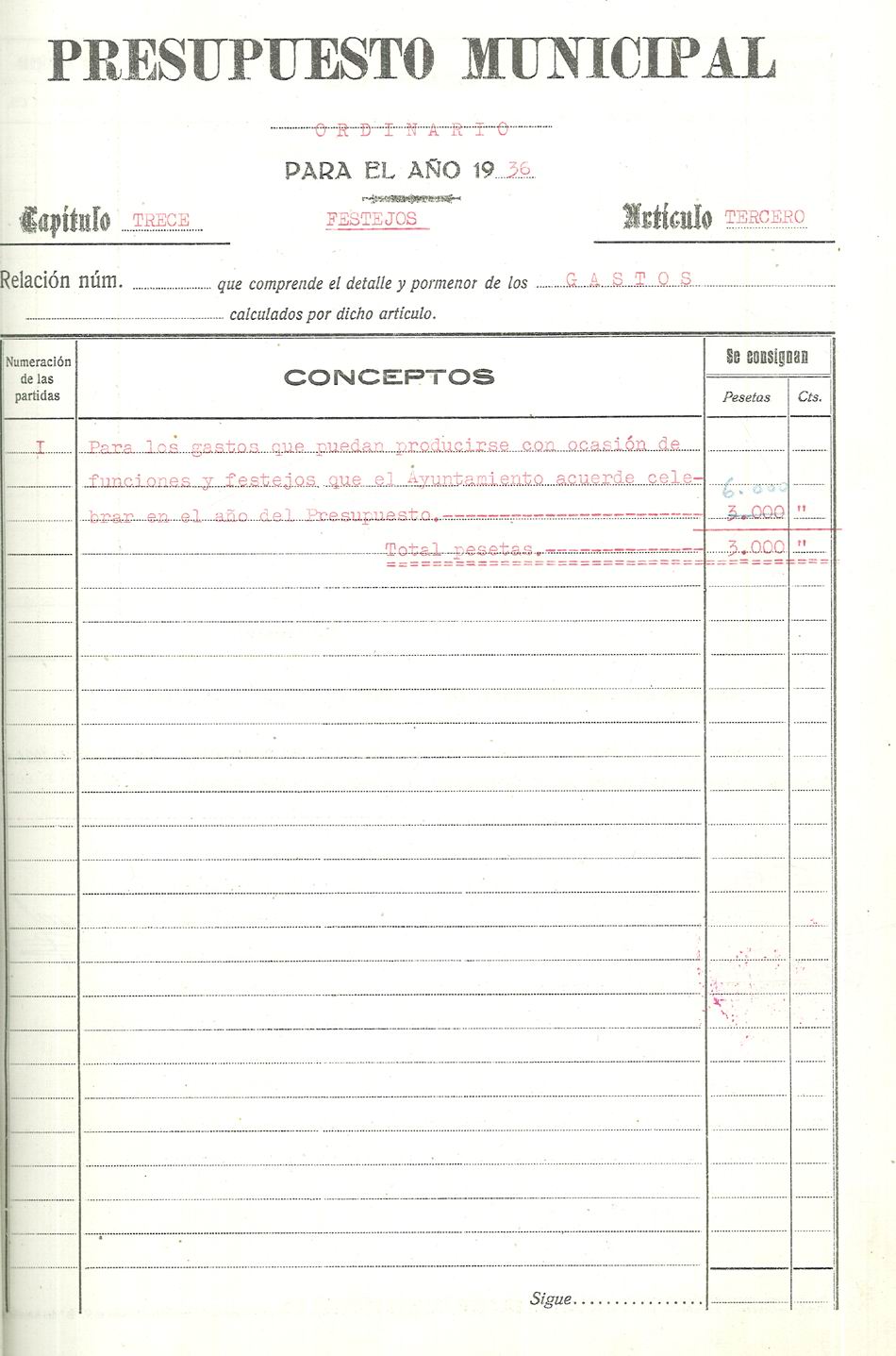 Presupuesto municipal ordinario del Ayuntamiento de Aspe para el año 1936