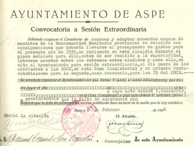 Presupuesto municipal ordinario del Ayuntamiento de Aspe para el año 1936