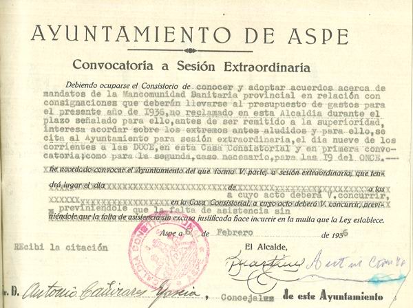 Presupuesto municipal ordinario del Ayuntamiento de Aspe para el año 1936