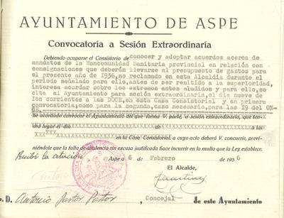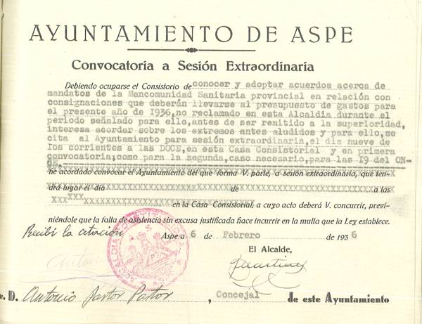 Presupuesto municipal ordinario del Ayuntamiento de Aspe para el año 1936