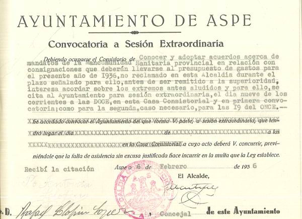 Presupuesto municipal ordinario del Ayuntamiento de Aspe para el año 1936