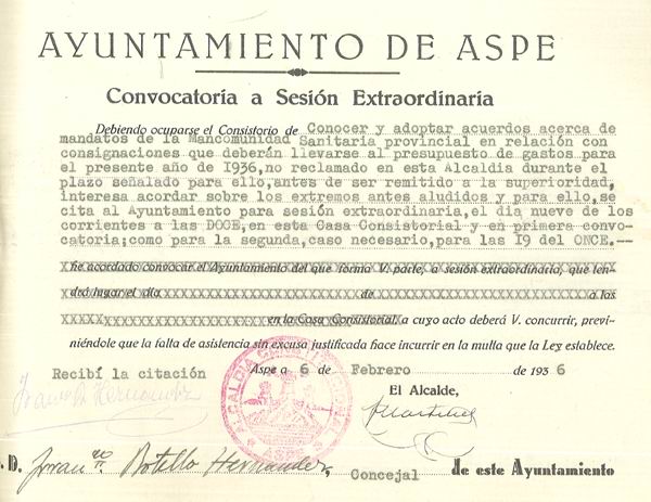 Presupuesto municipal ordinario del Ayuntamiento de Aspe para el año 1936