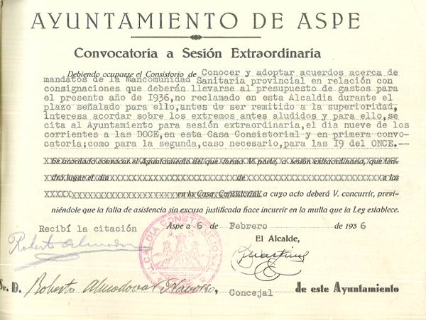 Presupuesto municipal ordinario del Ayuntamiento de Aspe para el año 1936
