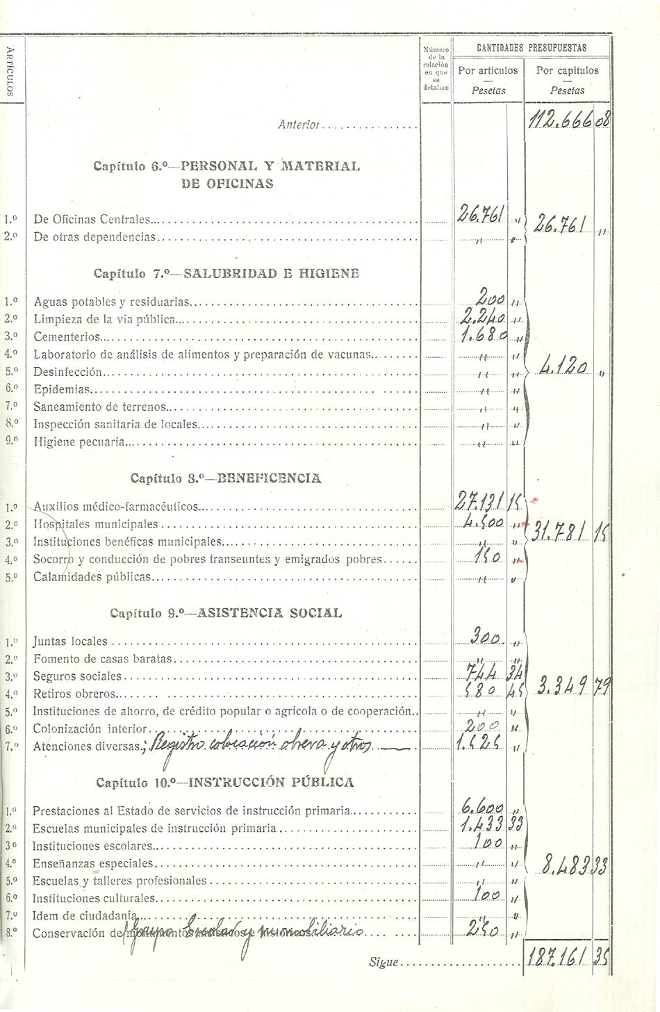 Presupuesto municipal ordinario del Ayuntamiento de Aspe para el año 1936