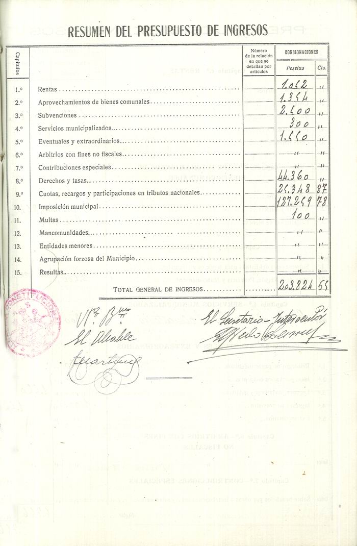 Presupuesto municipal ordinario del Ayuntamiento de Aspe para el año 1936