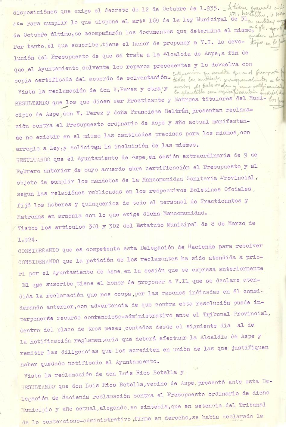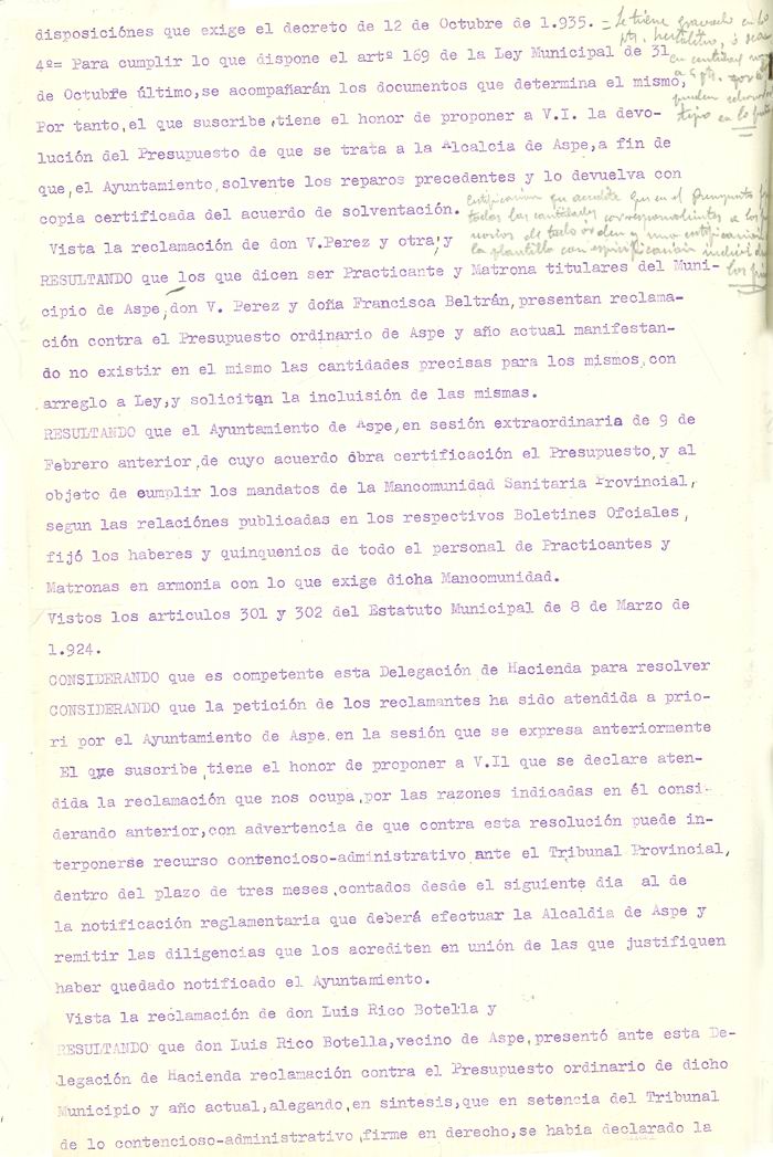 Presupuesto municipal ordinario del Ayuntamiento de Aspe para el año 1936