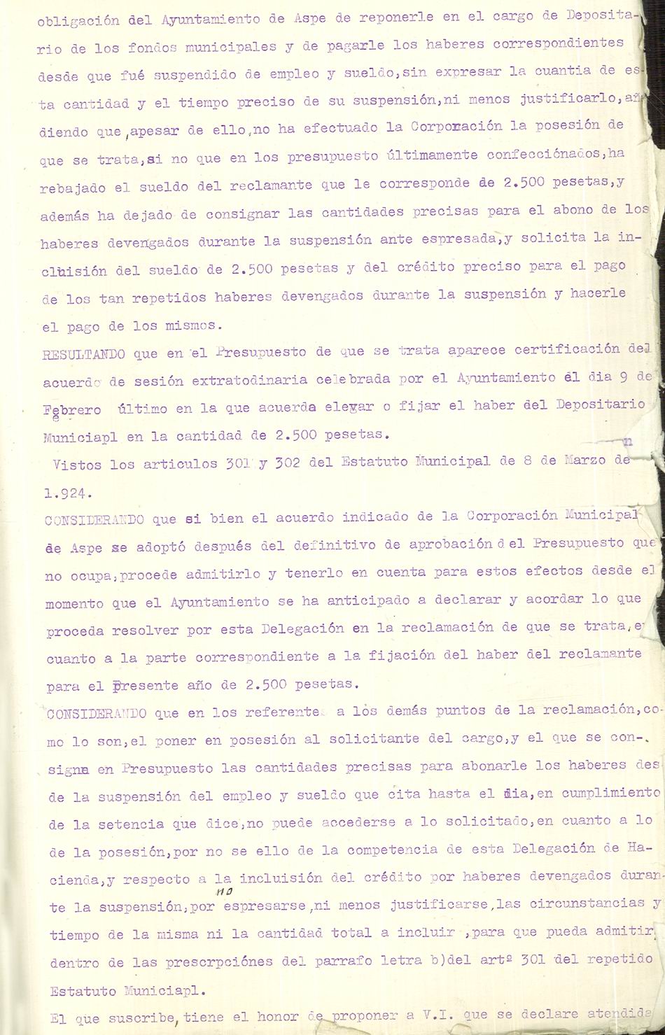 Presupuesto municipal ordinario del Ayuntamiento de Aspe para el año 1936