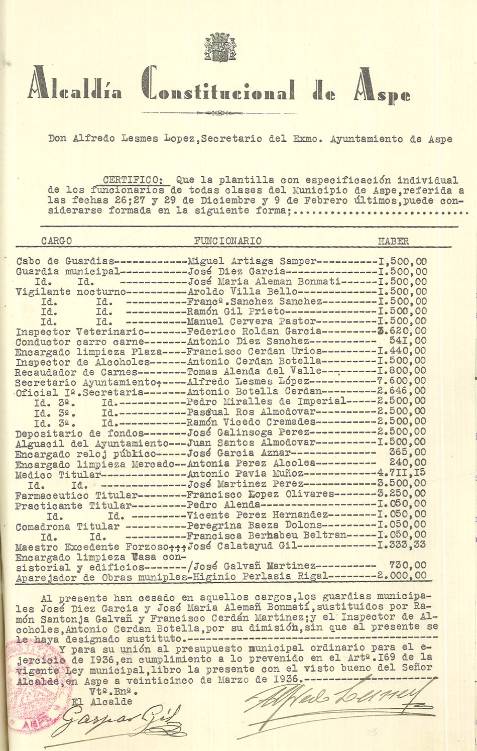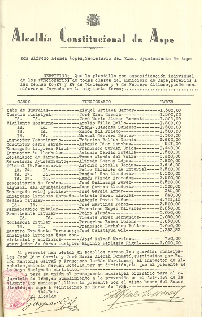 Presupuesto municipal ordinario del Ayuntamiento de Aspe para el año 1936