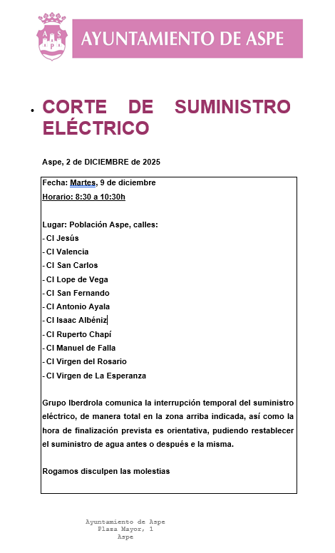 Prevista para el martes 9 de diciembre de 8:30 a 10:30h Comparte esta información Share on FacebookShare on Facebook Share on XShare on X Share on WhatsAppShare on WhatsApp TweetShare on Pinterest Share on LinkedInShare on LinkedIn