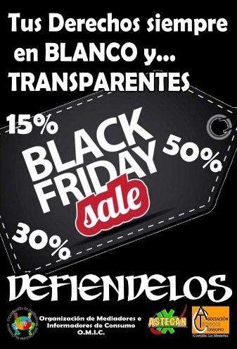 Para que el próximo Black Friday (Viernes Negro) y Cyber Monday (ciber-lunes) tus derechos sean «Blancos y transparentes» y no caigas en el engaño al hacer tus compras online o en los establecimientos y, a la vez tengas todas las garantías a la hora de comprar un producto has de tomar precauciones.