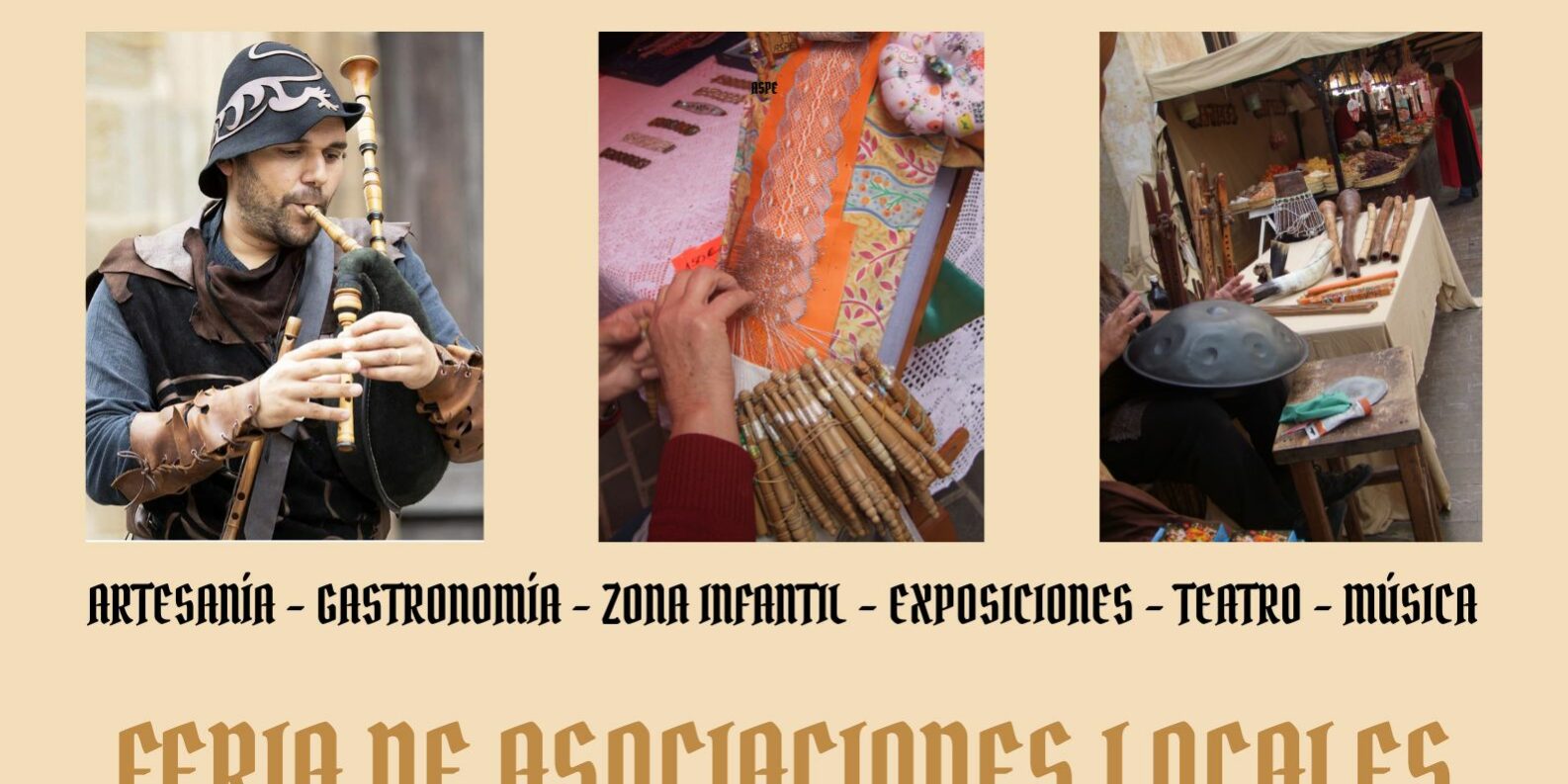 Las asociaciones locales APDA, El Club de la Aguja, Asociación de Bolilleras, Cruz Roja, Jóvenes de la Basílica, Manos Unidas y la Asociación FibroAspe, contarán con un espacio propio para dar a conocer su trabajo durante los tres días del Mercado.
