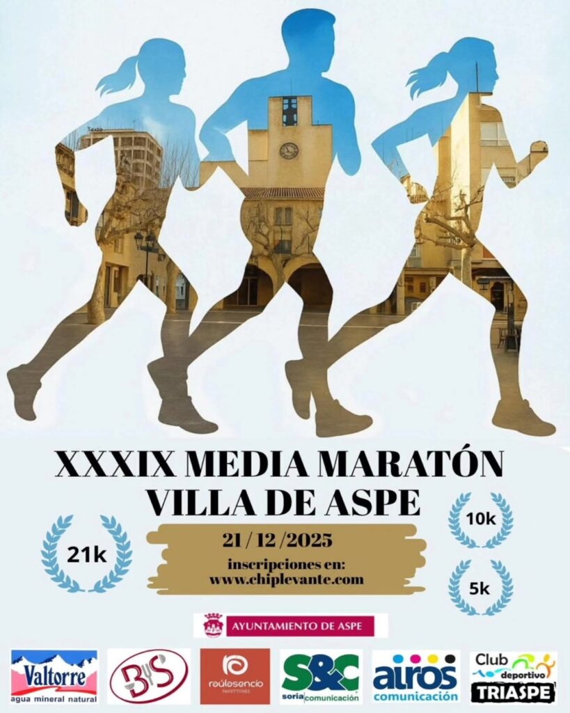 El concejal de Deportes, Daniel Aguilar Puche, ha presentado, junto a Javier Llopis, del Club organizador Triaspe, la próxima edición de la Media Maratón Villa de Aspe. Aguilar ha recordado que la tradicional prueba deportiva tendrá lugar el 21 de diciembre, e incluirá las modalidades de Media Maratón, 5K y 11K, que este año incorporan diversas novedades.