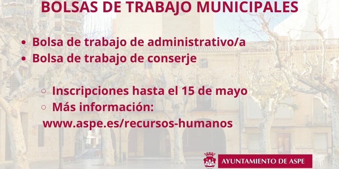 Abierto el plazo de solicitud para las bosas de trabajo de conserje-mantenedor y administrativo/a en el Ayuntamiento de Aspe.