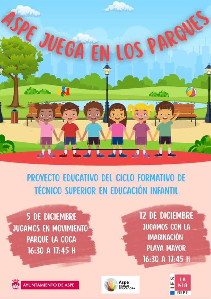La Concejalía de Educación del Ayuntamiento de Aspe ha dado a conocer la puesta en marcha de la iniciativa educativa “Aspe juega en los parques”, un proyecto desarrollado por el alumnado del ciclo formativo de Técnico Superior en Educación Infantil del IES La Nía.