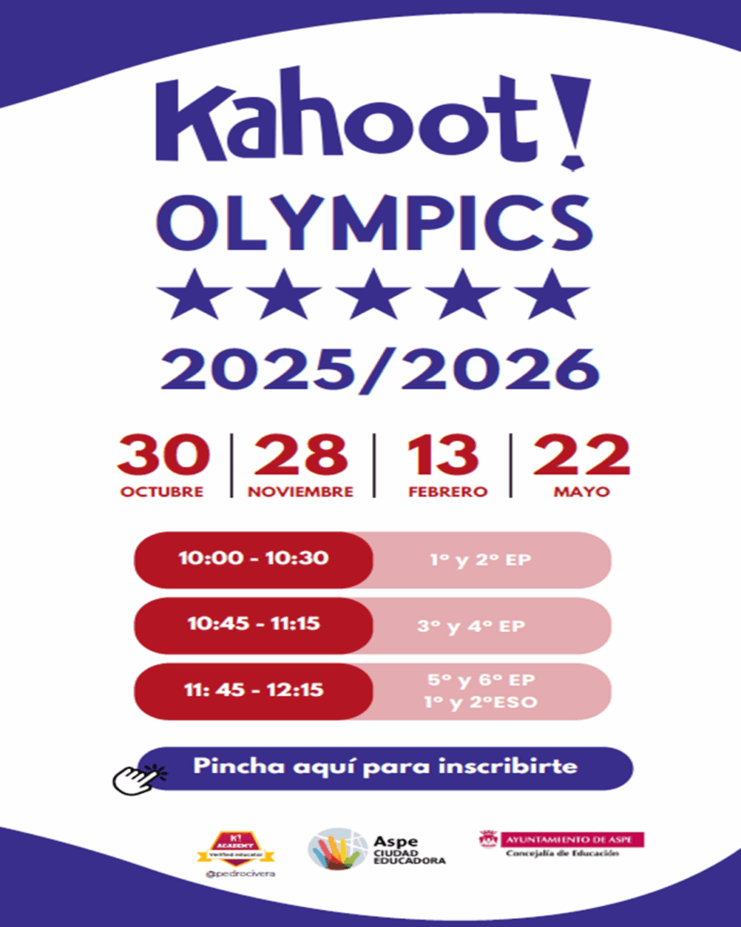 La Concejalía de Educación del Ayuntamiento de Aspe ha presentado el proyecto “Kahoot Olympic”, una iniciativa impulsada por el CEIP Dr. Calatayud dentro del programa general “Innovación juntos/juntas para una educación sin límites”, que incluye cuatro proyectos orientados a fomentar un aprendizaje más participativo y motivador en los centros educativos del municipio.