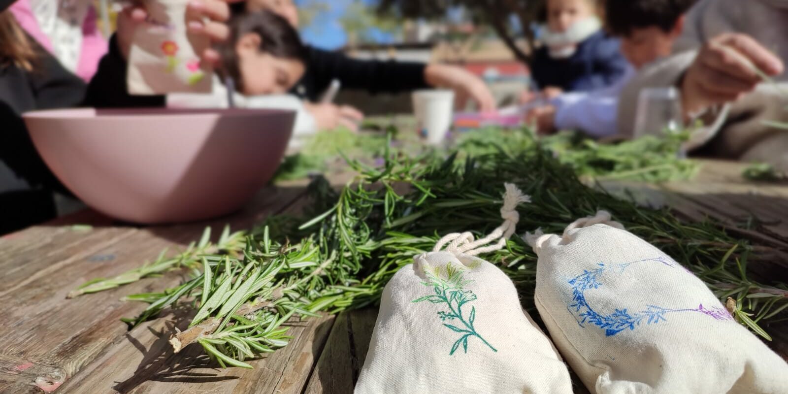 La jornada incluyó además varios talleres participativos dirigidos a las familias. Por un lado, se realizó una siembra de semillas de caléndula reutilizando envases de yogur, fomentando así la reutilización de materiales. Por otro, se elaboraron ambientadores naturales con lavanda y romero, preparados en pequeños saquitos rellenos de arroz que posteriormente fueron decorados de forma creativa por los participantes.