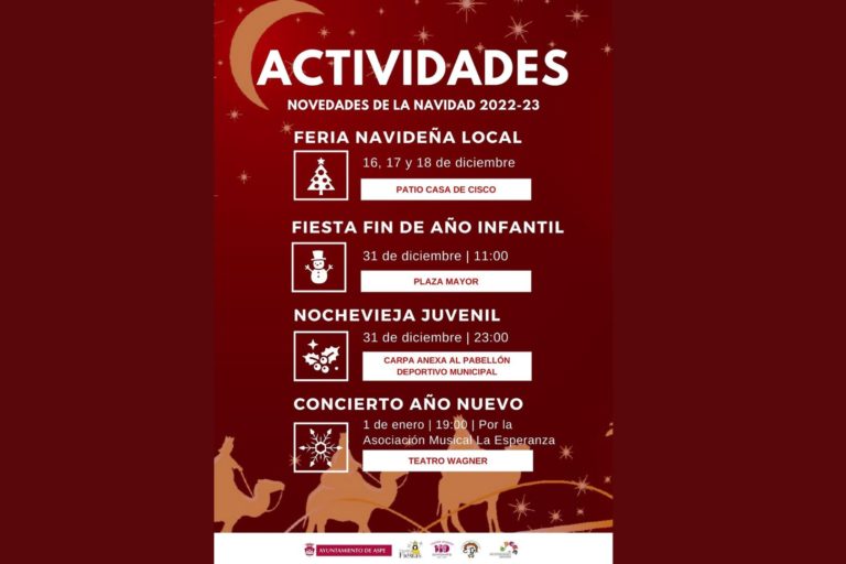 Feria de Navidad local, Fiesta fin de año infantil, Nochevieja juvenil y el Concierto de Año nuevo son las actividades…