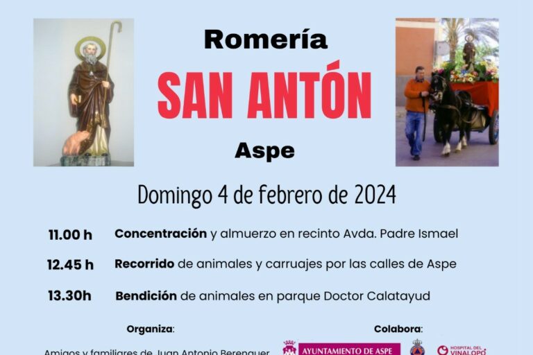 El Ayuntamiento de Aspe invita a la ciudadanía a participar en la celebración de la festividad de San Antón, que…