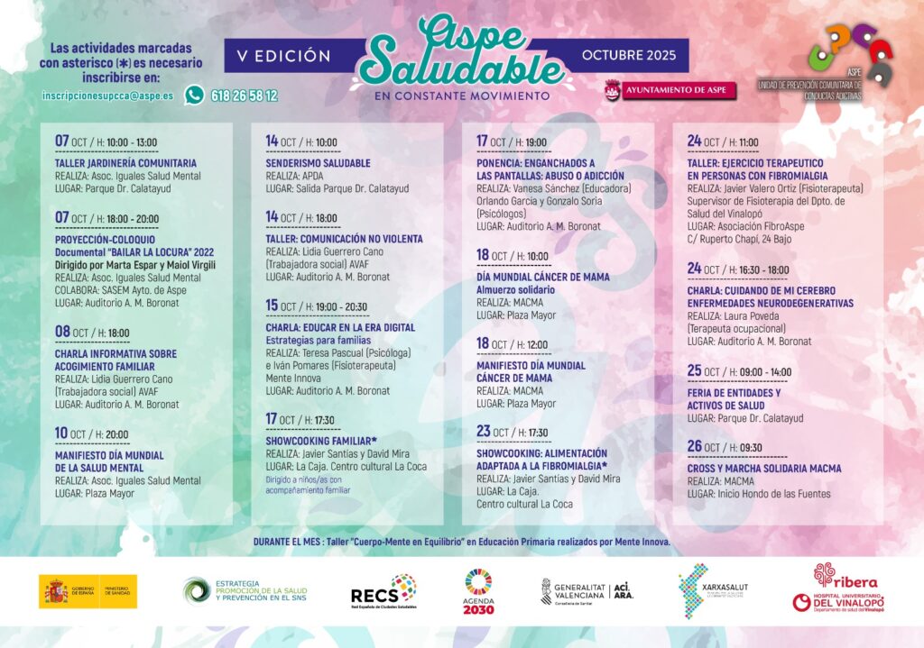 Con esta programación, el Ayuntamiento reafirma su compromiso con la promoción de la salud y el bienestar de la ciudadanía, ofreciendo un espacio de encuentro, reflexión y participación para toda la población aspense.