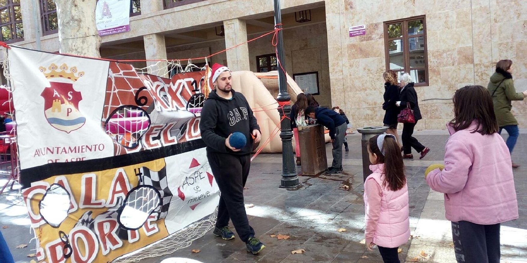 El próximo sábado, 22 de diciembre, las Concejalías de Fiestas y Deportes del Ayuntamiento de Aspe, ponen en marcha una nueva jornada navideña de juegos deportivos en la Plaza Mayor. La actividad será dirigida por los monitores del área de Deportes del consistorio aspense y se podrán practicar multitud de divertidos juegos predeportivos por los niños y niñas de la localidad, además de disfrutar con castillos hinchables.