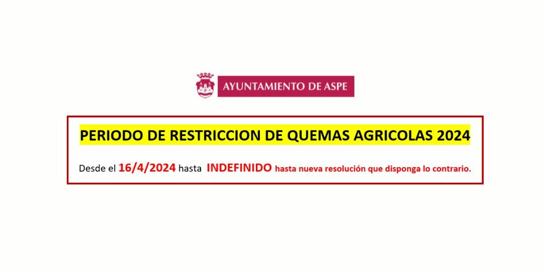 quema de márgenes de cultivo o de eliminación de residuos agrícolas o forestales mediante el uso del fuego. Esta resolución está en vigor desde el 16 de abril y hasta nuevo aviso.