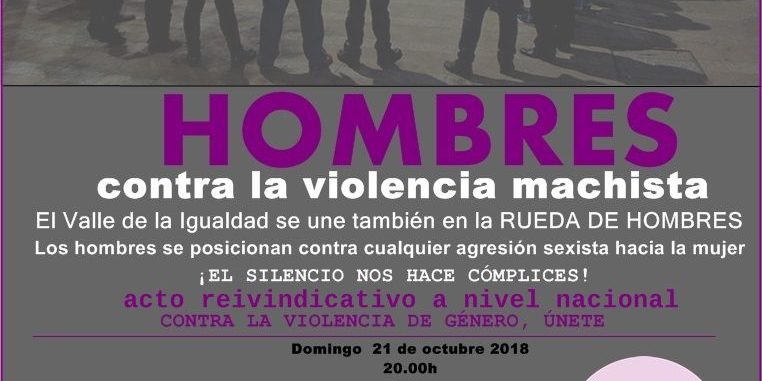 El Valle de la Igualdad, Plataforma de Igualdad, de la que Aspe forma parte, convoca a la ciudadanía a participar en la Rueda de hombres que se celebrará en la Plaza de la villa del vecino pueblo de Hondón de la Nieves el domingo, 21 de octubre, a las 20 horas.