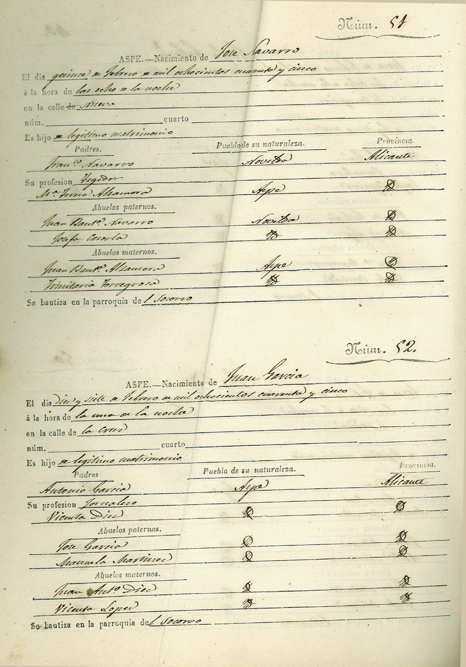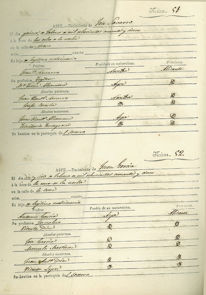Registro civil de nacidos de la Villa de Aspe