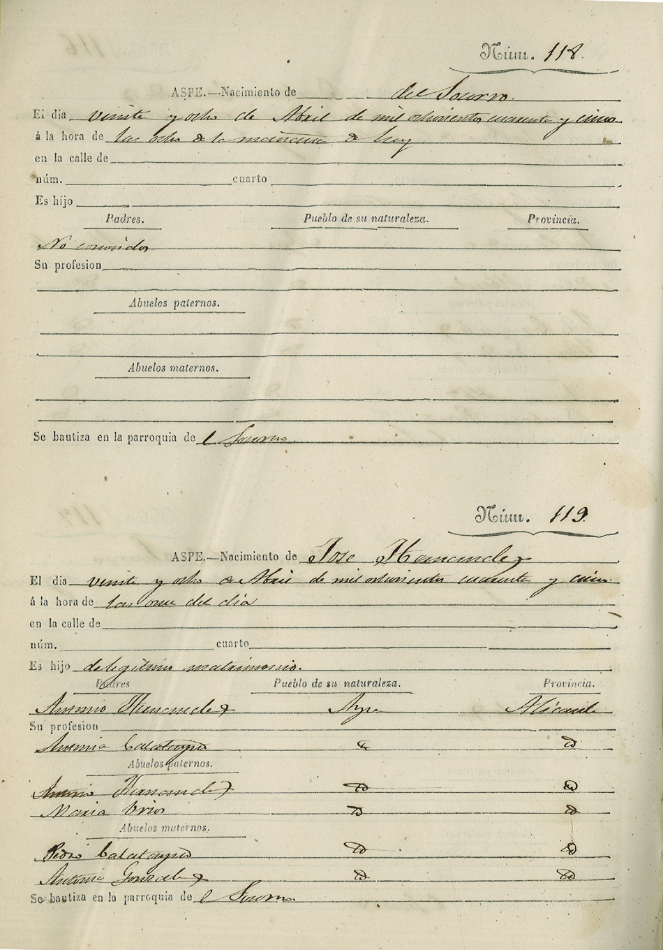 Registro civil de nacidos de la Villa de Aspe