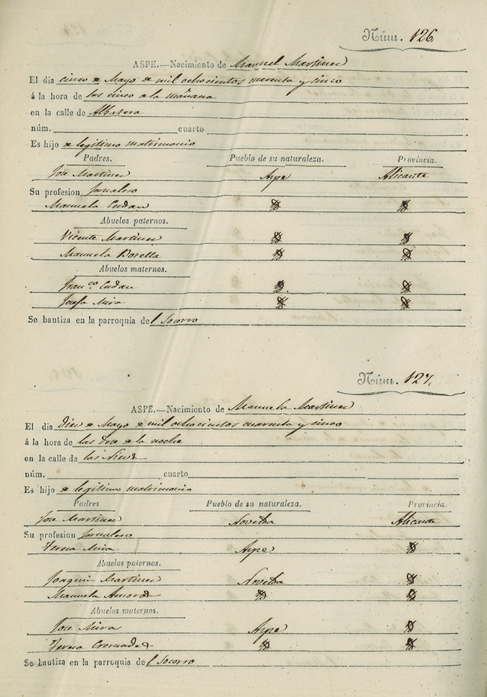 Registro civil de nacidos de la Villa de Aspe