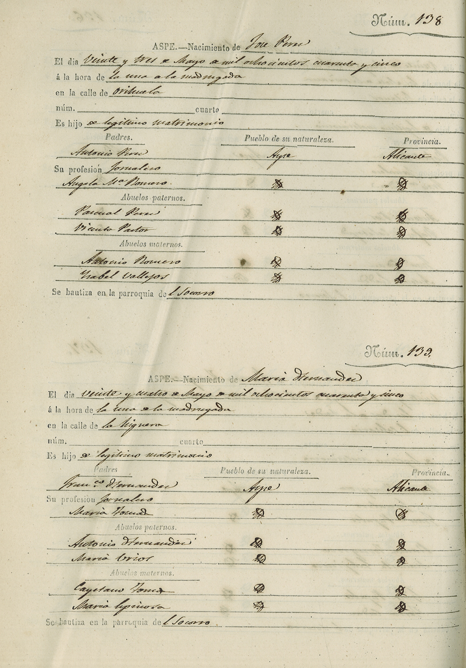 Registro civil de nacidos de la Villa de Aspe
