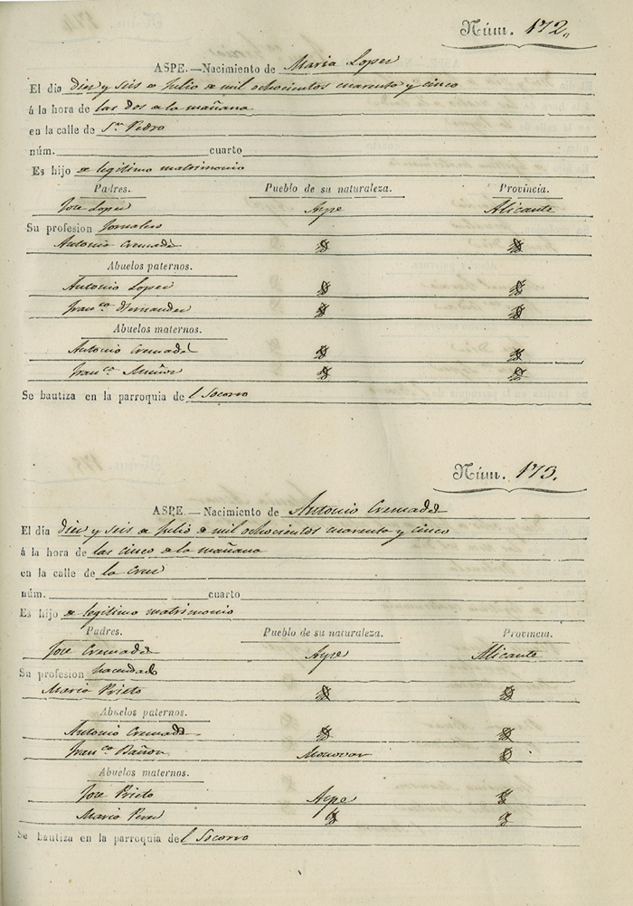 Registro civil de nacidos de la Villa de Aspe