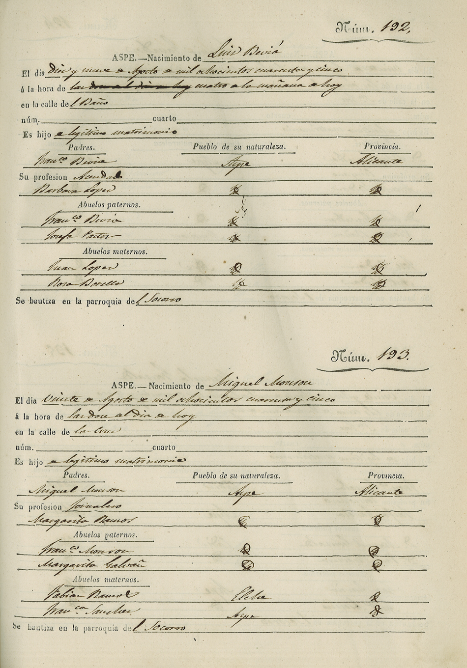 Registro civil de nacidos de la Villa de Aspe