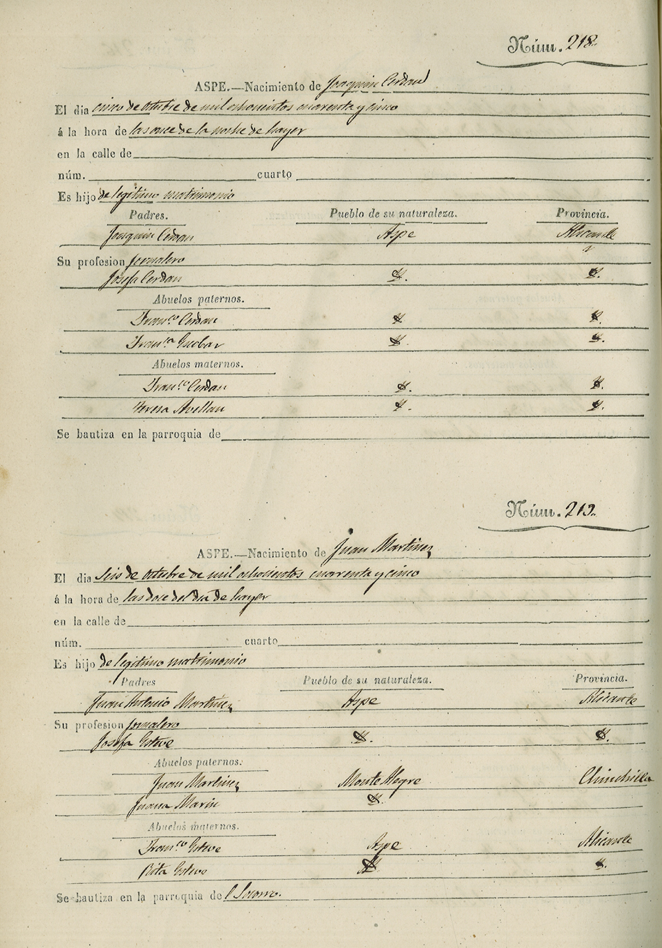 Registro civil de nacidos de la Villa de Aspe