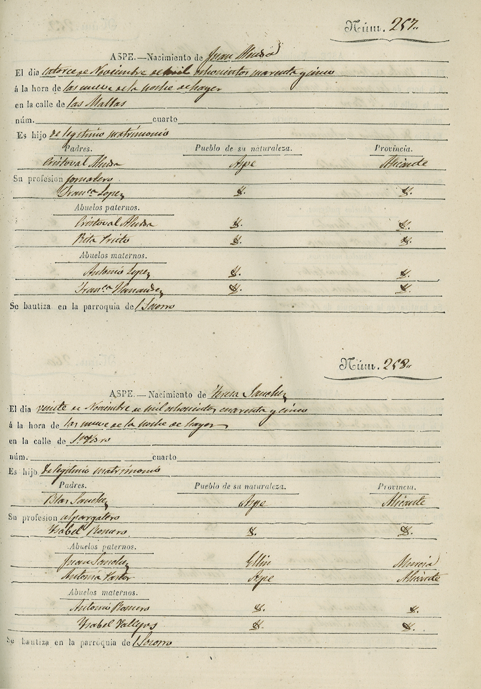 Registro civil de nacidos de la Villa de Aspe