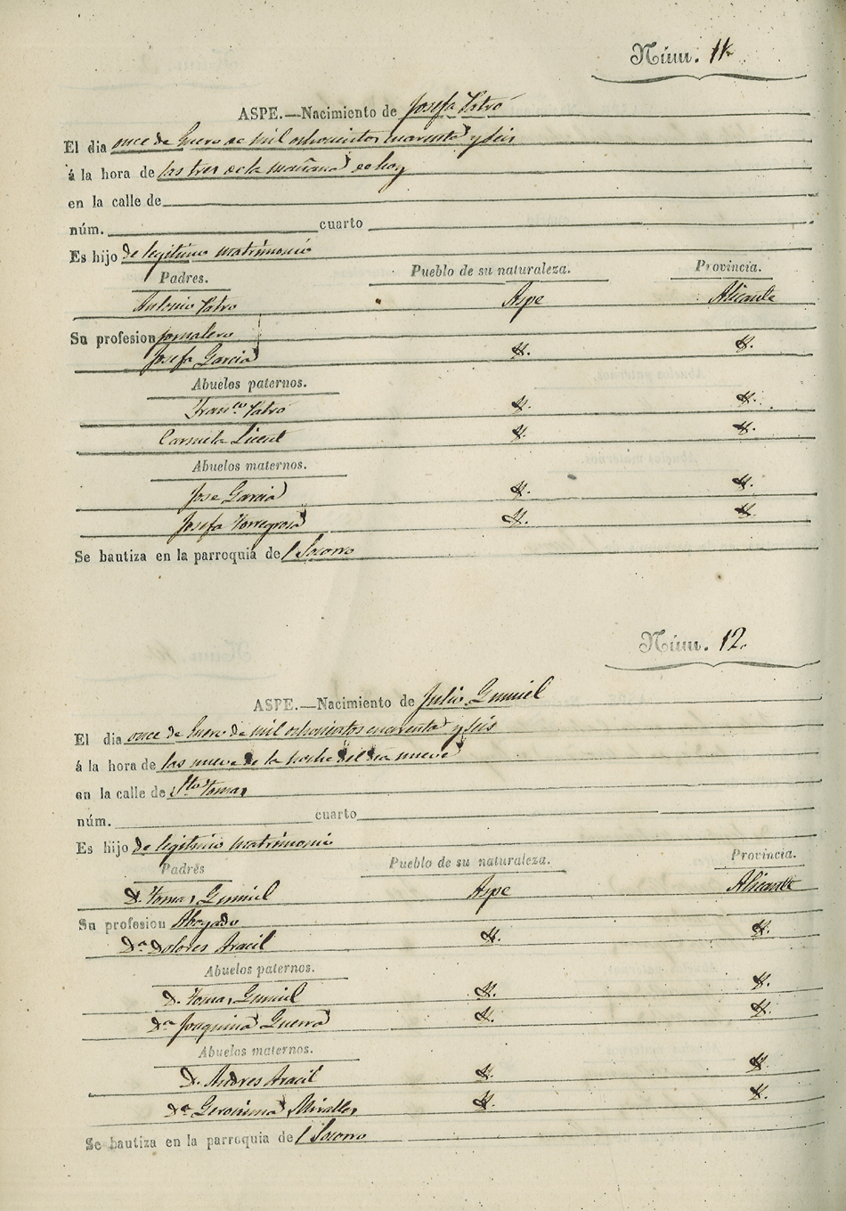 Registro civil de nacidos de la Villa de Aspe