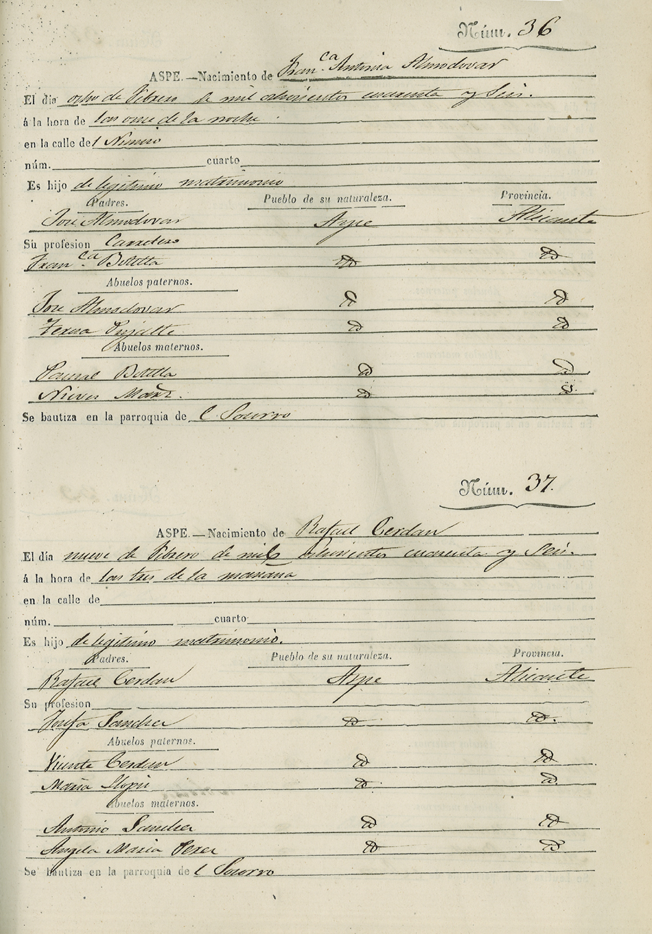 Registro civil de nacidos de la Villa de Aspe
