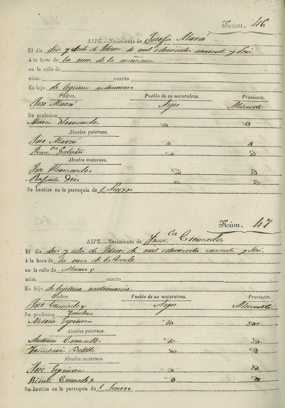 Registro civil de nacidos de la Villa de Aspe