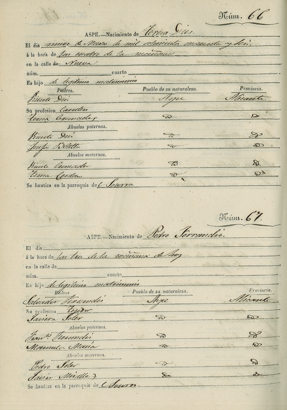 Registro civil de nacidos de la Villa de Aspe