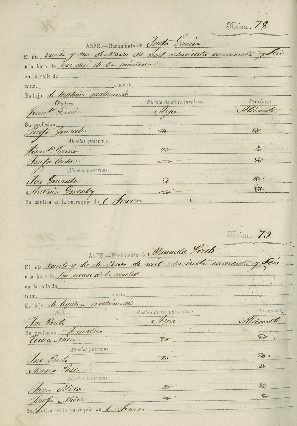 Registro civil de nacidos de la Villa de Aspe