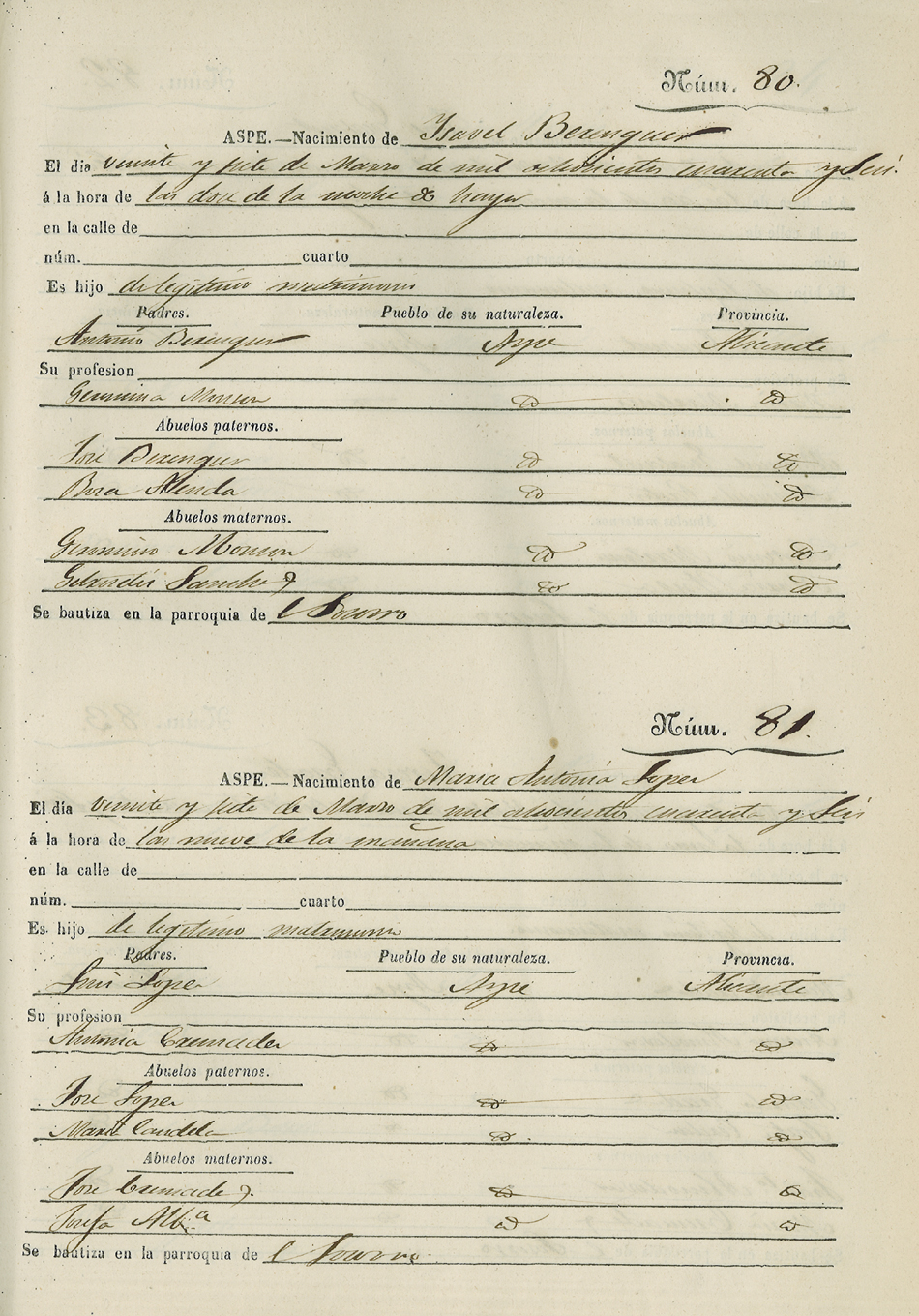 Registro civil de nacidos de la Villa de Aspe
