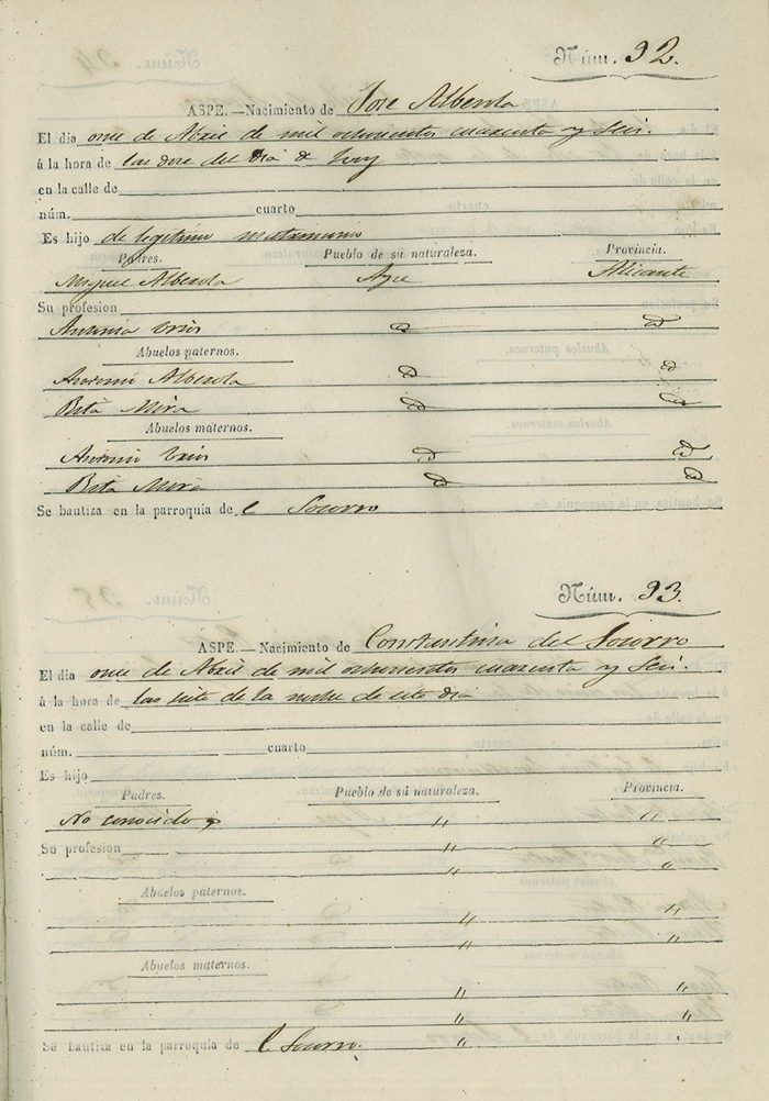 Registro civil de nacidos de la Villa de Aspe