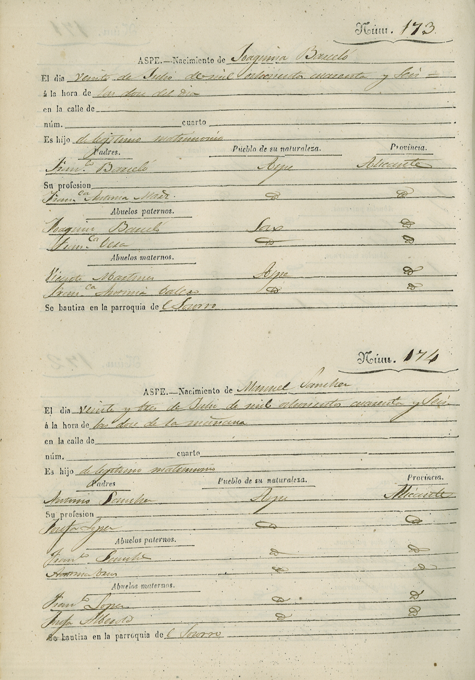Registro civil de nacidos de la Villa de Aspe