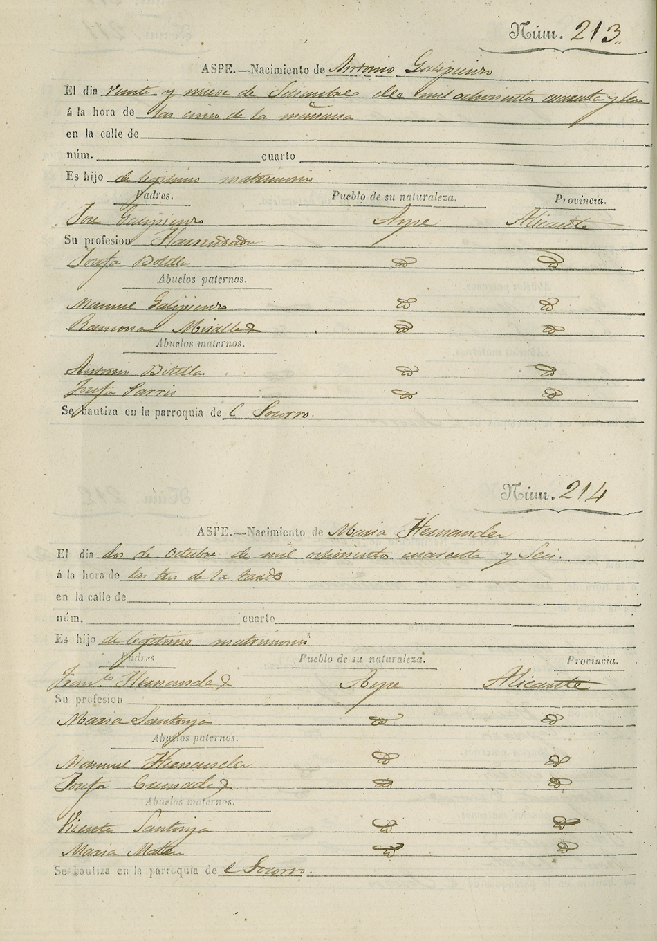 Registro civil de nacidos de la Villa de Aspe