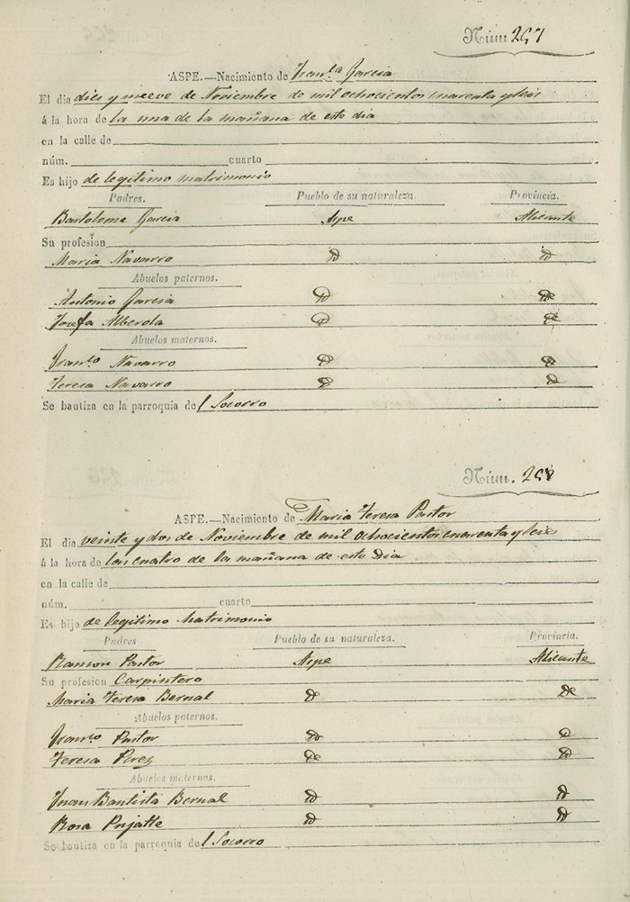 Registro civil de nacidos de la Villa de Aspe