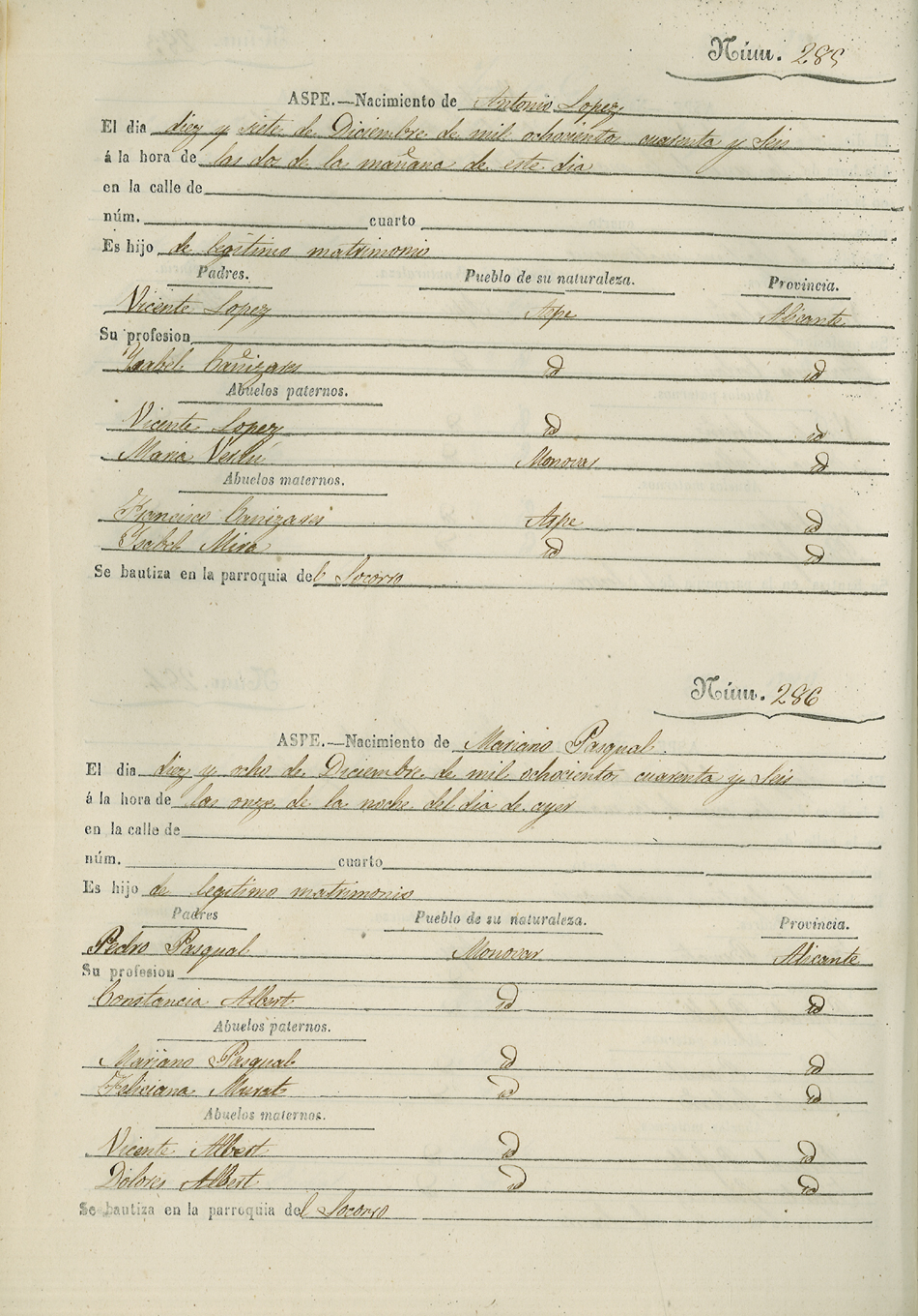 Registro civil de nacidos de la Villa de Aspe