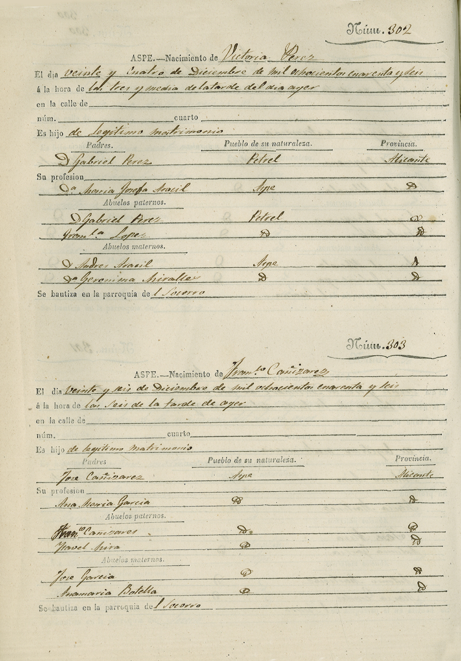Registro civil de nacidos de la Villa de Aspe