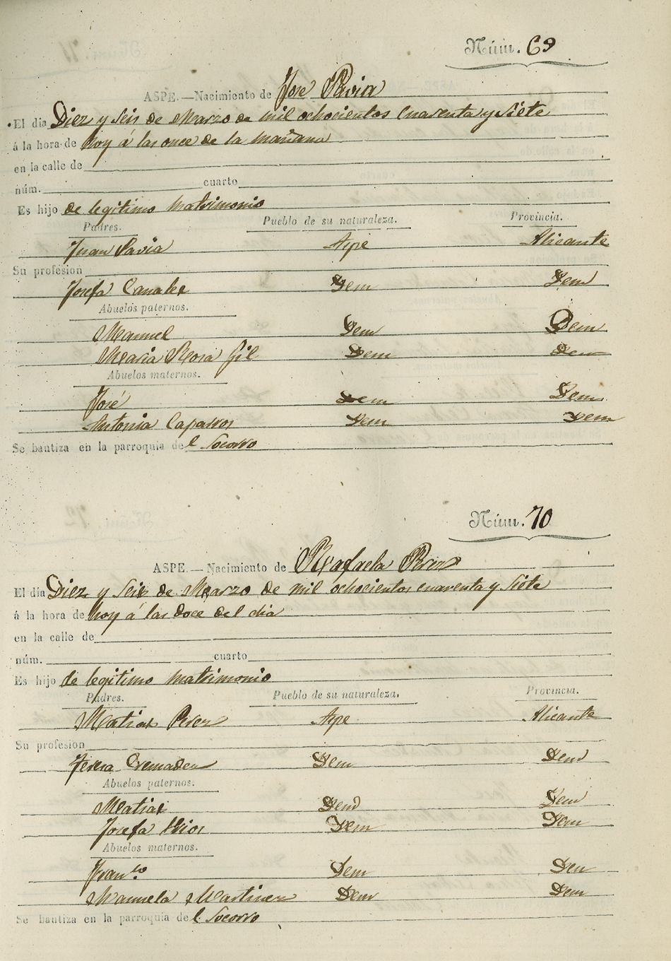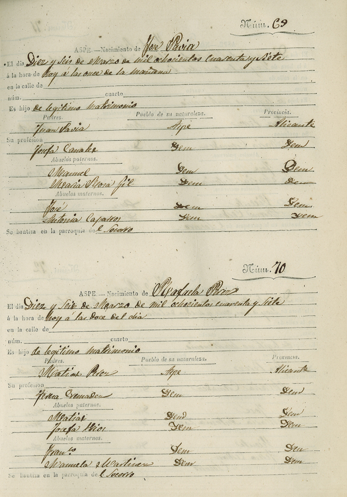 Registro civil de nacidos de la Villa de Aspe