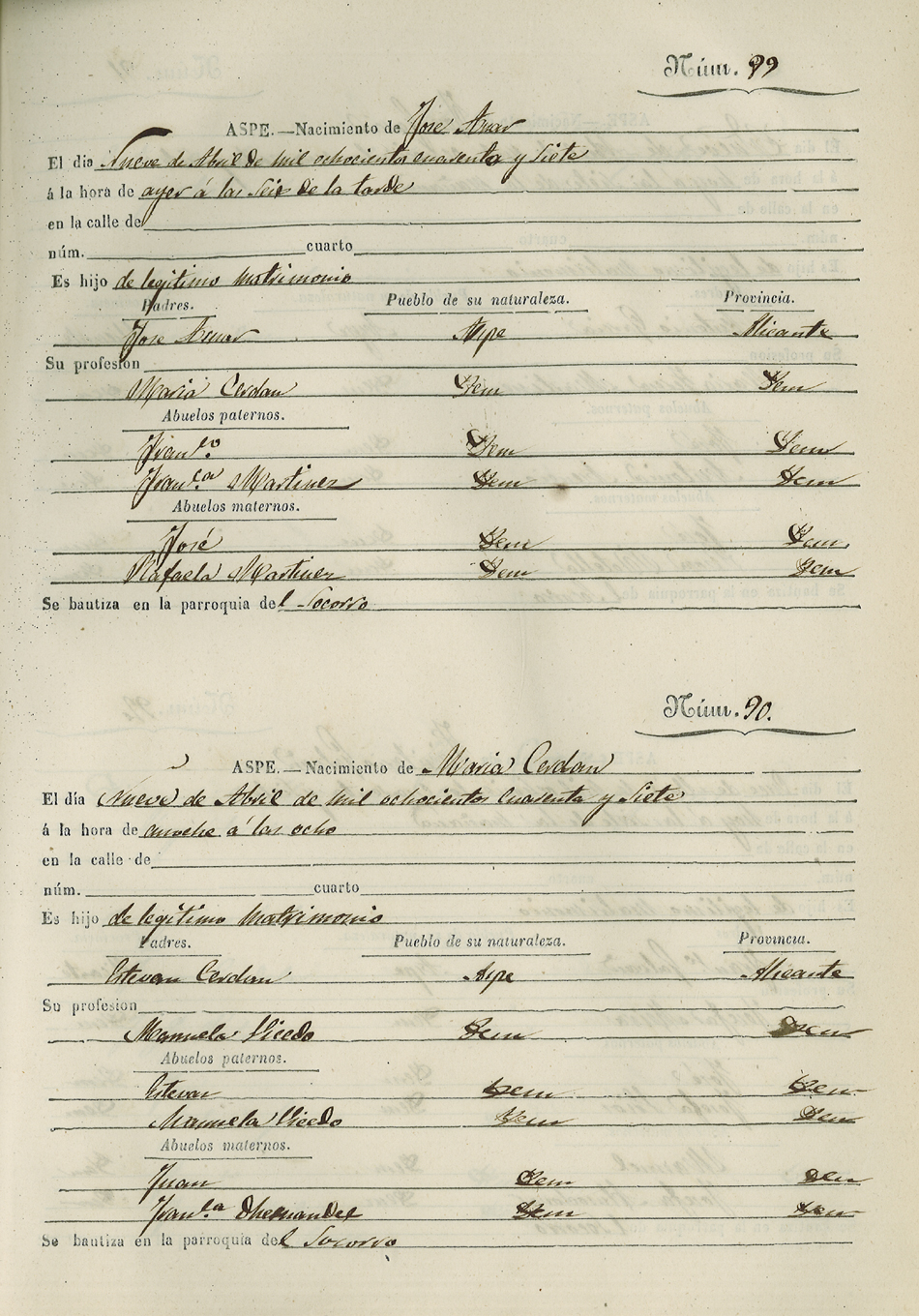 Registro civil de nacidos de la Villa de Aspe